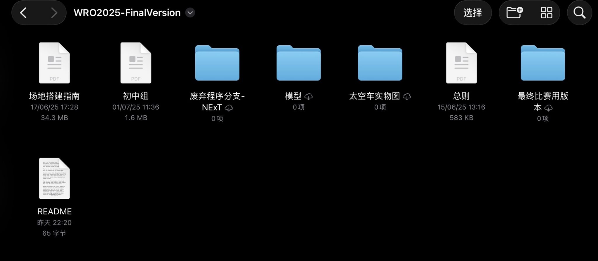 此项目包含WRO2025总赛规、中学组赛规、中学组搭建指南以及我们所为此构建的程序和机器人模型。